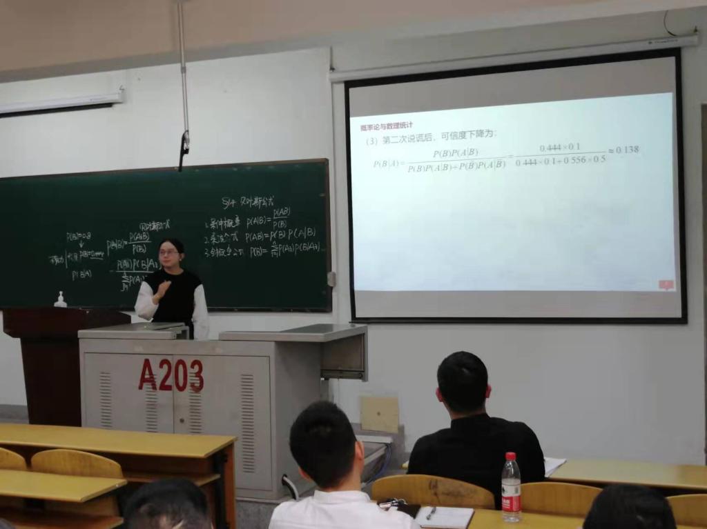 周全老师的选讲内容为《概率论与数理统计》中的“贝叶斯公式”,她以大家感兴趣的案例引入了贝叶斯公式的定义,深入浅出地讲授了贝叶斯公式的实际应用,并较好地融入了思政元素,润物细无声;贾静兰老师的选讲内容为《高等数学》中的“拉格朗日中值定理”,通过两个定理的对比,让大家对拉格朗日中值定理有了更深入的理解。两位老师着装典雅得体,教态自然大方,通过丰富的肢体表现,并借助多媒体等教学辅助设备,有层次、有重点地讲授了专业知识。总的来看,两位老师的授课信息量大,图文并茂,深入浅出,具有启发性,充分展示了黄色网址大全