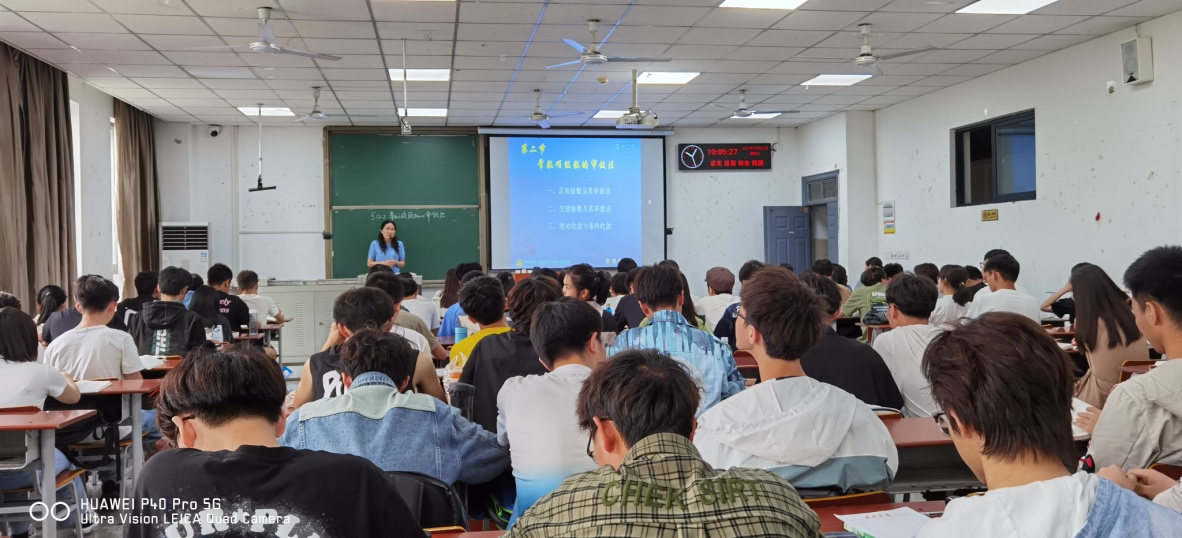 王老师通过知识的内在逻辑结构,深刻分析了一类正项级数的收敛审敛的叛定思想方法,水到渠成地给出了叛定定理,并结合典型例题介绍了定理在解题中的应用。王老师声情并茂,循循善诱,以问题为导向让课堂充满了思考的乐趣。