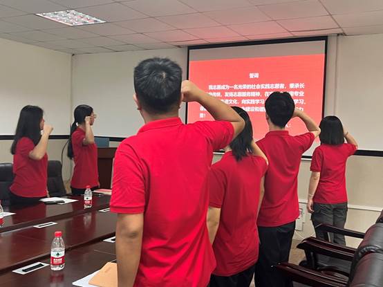 活动伊始,全体起立,奏唱国歌,启动仪式拉开帷幕。首先暑期社会实践队队长欧登波代表志愿者发言,他表示,暑期社会实践项目为学生提供了广阔的舞台,同学们定会履行誓言,全力以赴开展好今年的社会实践活动。接着院党委副书记袁海山结合自身经历,向志愿者提出了建议及要求,他表示,在社会实践的过程中,要确保活动安全,不仅确保自身安全,也要确保支教学生的安全。随后院党委书记李喜成为本次暑期社会实践授旗,并对实践团队成员提出了三点希望:一是希望团队时刻紧绷安全神经,确保暑期社会实践活动的顺利进行;二是希望成员珍惜本次机遇,全面提升自身综合素质并高质量的完成支教工作;三是希望学生充分发扬志愿者精神,争当时代先锋,在社会实践和志愿服务中践行“请党放心 强国有我”的铮铮誓言,同时努力“让青春在全面建设社会主义现代化国家的火热实践中绽放绚丽之花”。授旗后,志愿队代表于佳琳带领全体志愿队队员进行宣誓,志愿者们纷纷表示,在接下来的实践活动中将深化思想引领,把言语落到实处,磨炼意志、施展才华、开拓创新,在实践中成长,在奉献中成才。最后暑期社会实践团队成员签署安全责任书及支教协议并到楼下进行合影留念。本次启动仪式圆满结束。