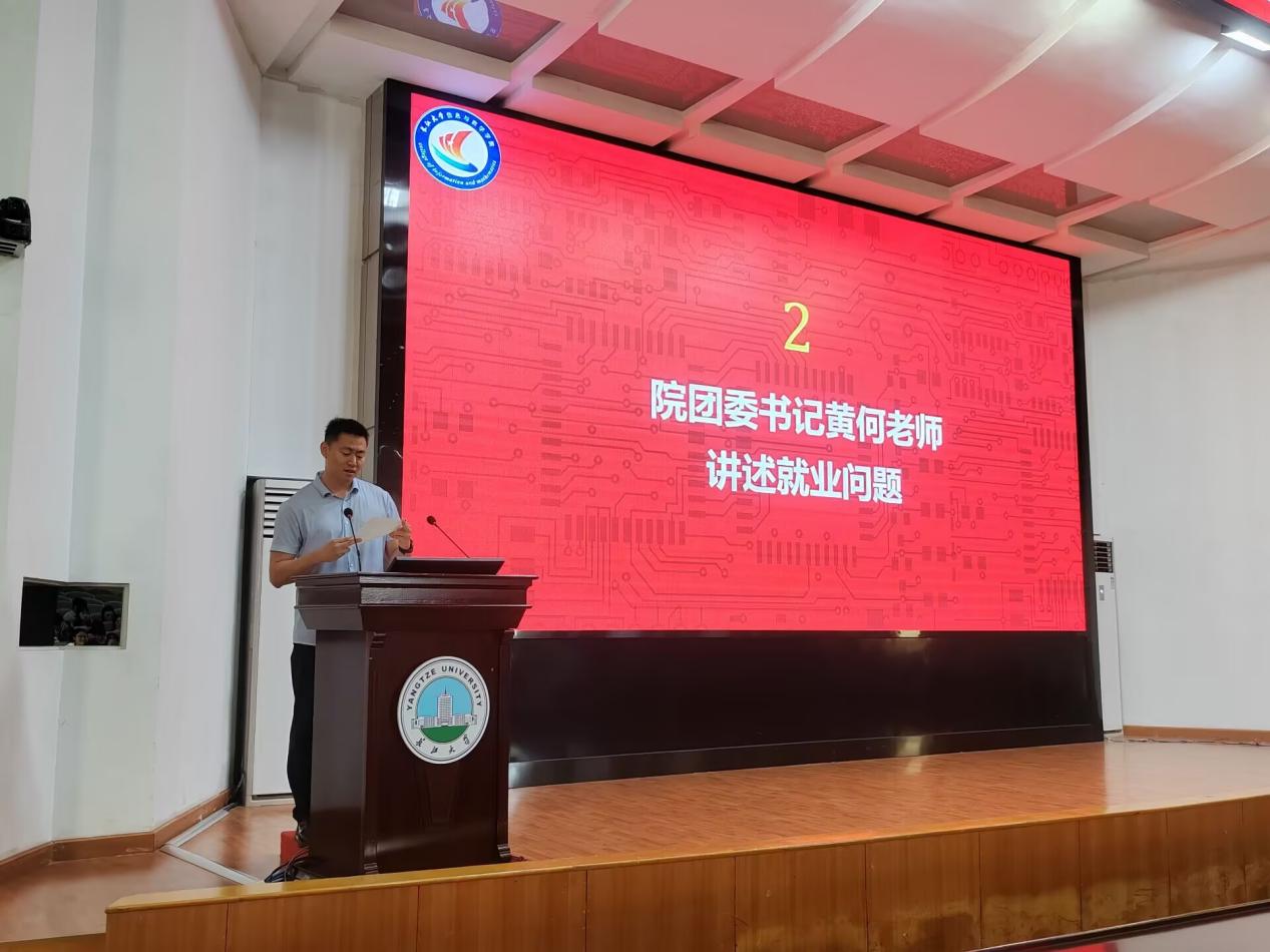 毕业年级大会在12教405报告厅隆重举行。典礼由黄何老师主持,院党委副书记谷军、院学工办主任姜曼、院团委书记黄何及全体毕业生齐聚一堂,共同见证这一重要时刻。