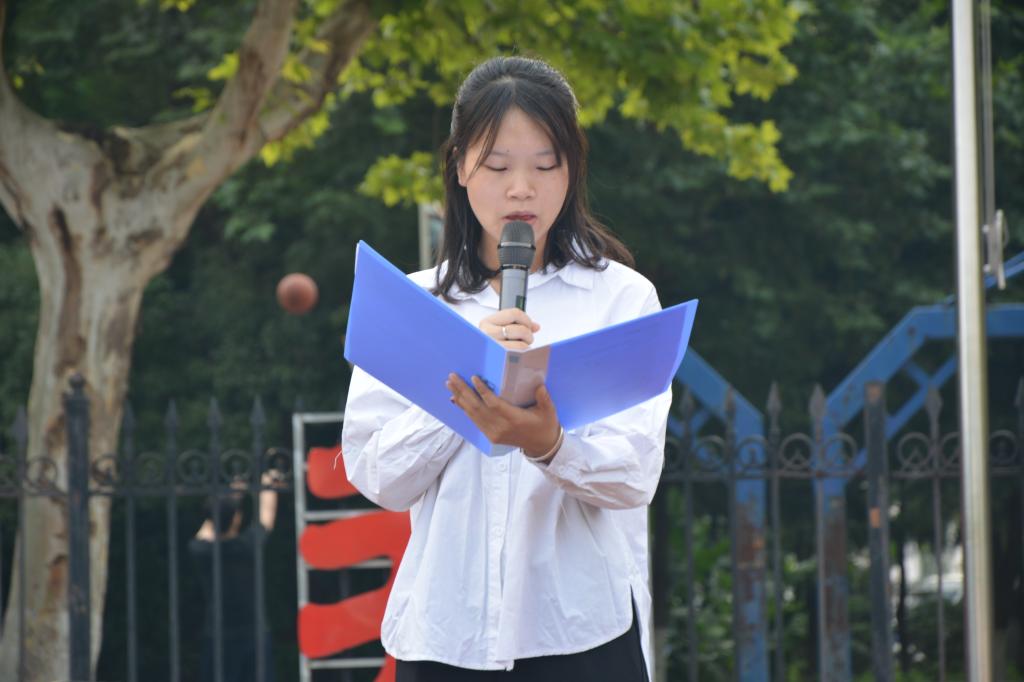 升旗结束后,由朱娅婷同学作为代表在国旗下发表诚信应考主题讲话,她呼吁同学们在考场上要发挥出色水平,以诚信考试为荣、以违纪作弊为耻。