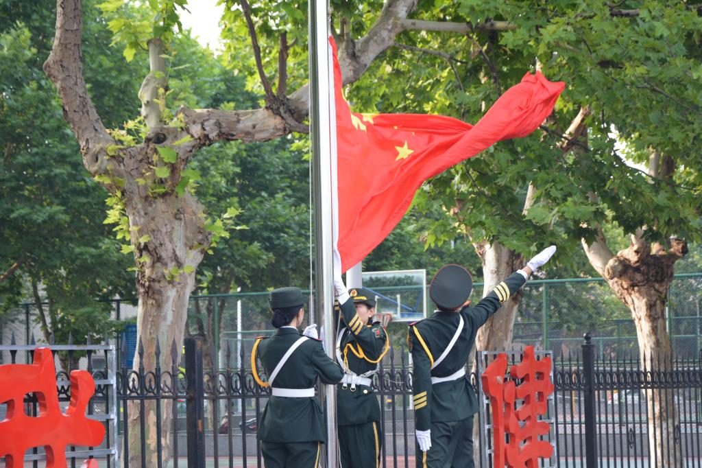 活动伴随着激昂雄壮的《国歌》声拉开帷幕,鲜艳的五星红旗冉冉升起,迎风飘扬,全体师生肃立于东校区田径场。
