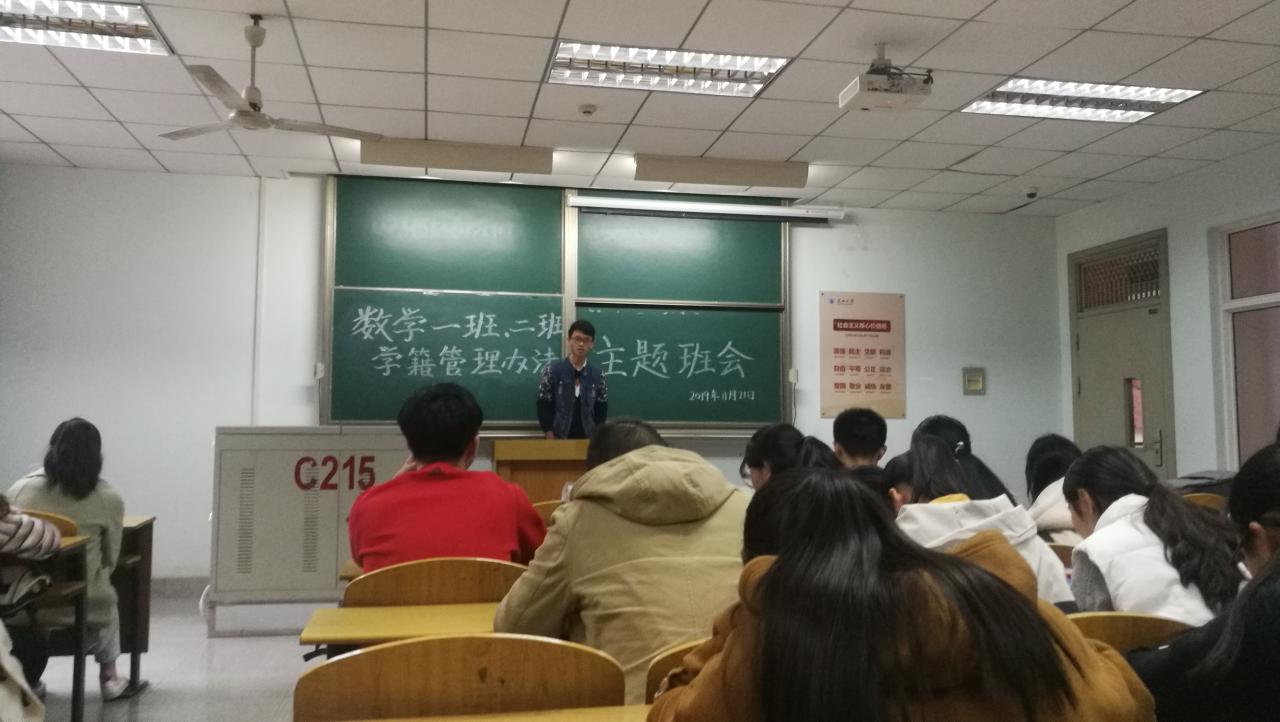 普通本科生学籍管理办法》,促使每位学生全面了解《学籍管理办法》内容, 11月18日至11月25日,信息与数学学院组织2018级、2019级本科生团支部陆续开展主题班团会,学习黄色网址大全
