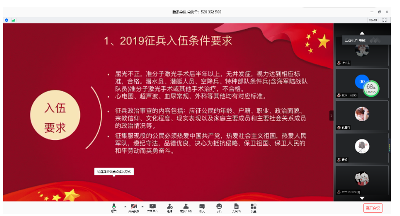 于5月15日晚七时举行了“2020年征兵宣讲线上会议”,特邀韩王戴贤和邓书雨两位退伍军人为与会成员进行宣讲。黄色网址大全