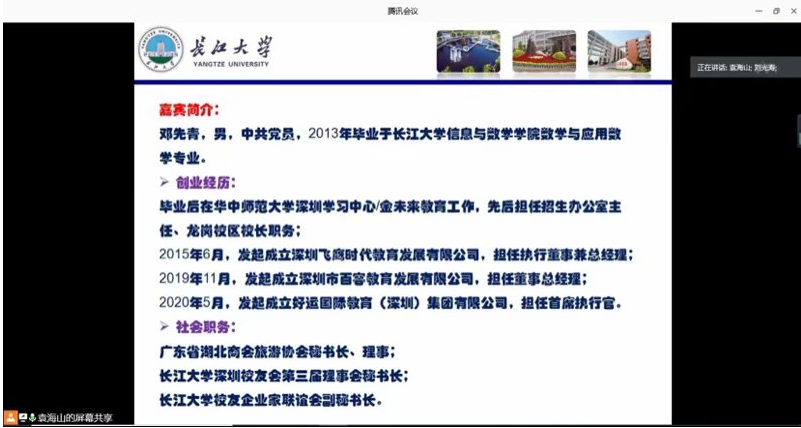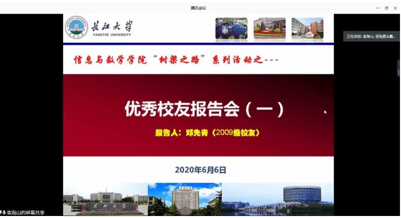 学生对于就业的了解,我院特于6月6日下午2:30召开了“线上优秀校友报告会”。参与此次会议的有院党委副书记袁海山,团委书记严星,大三、大四全体学生,特邀数学与应用数学专业09级校友邓先青为同学们分享就业经验。本次会议由袁海山书记主持。