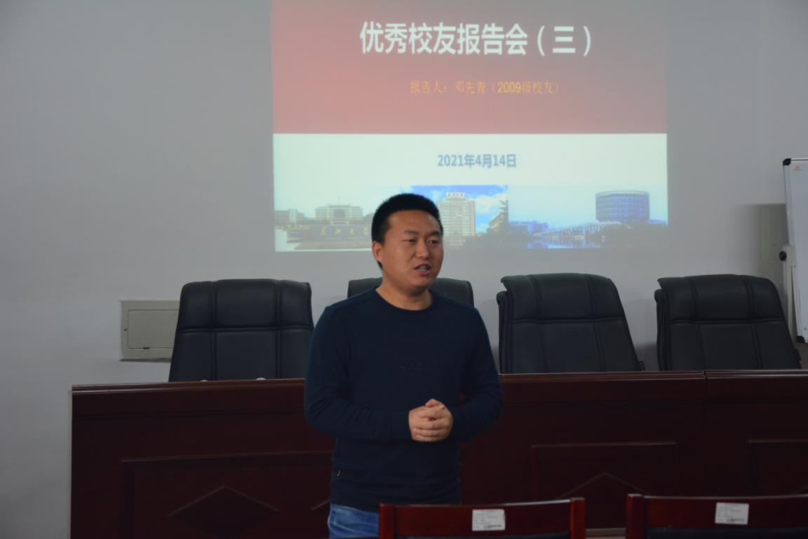 会议伊始,袁海山对校友邓先青做简要介绍,并强调道,同学们应认真学习优秀校友的分享,从中找到适合自己的经验。