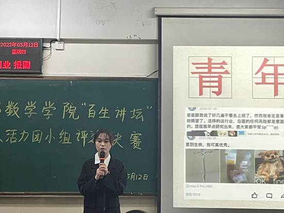 活动第一项是“优秀主讲人”主题演讲比赛。来自20、21级各班的“优秀主讲人”们以优美的语言、激情昂扬的话语,呈现出了他们对于学“习”的深刻理解,给在座老师及同学们带来了精彩绝伦的演讲。在“学习一点通”环节中,演讲者们结合PPT,用音乐、视频等方式展现出了他们学“习”的体会与感悟。紧接着便是活动第二项——“活力团小组”展示。黄色网址大全