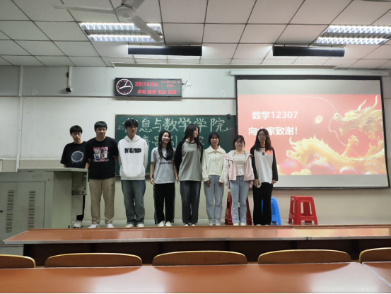 团委学生会主席谭雨茹,副主席欧登波、蒋旭丰,各部门的副部长,主持人汪诗婷,以及参加比赛的5组选手。