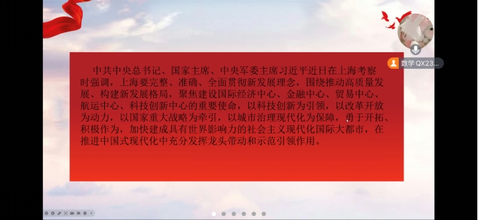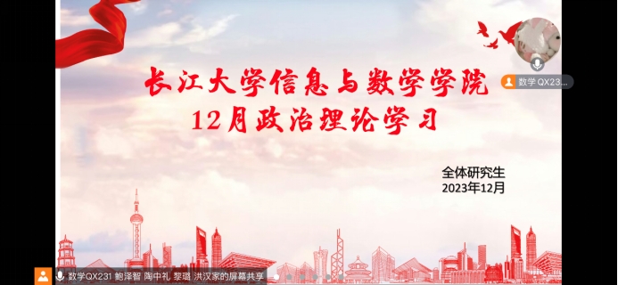 于2023年12月20日早10点在线上开展了十二月份政治理论学习。学院全体研究生参与学习,会议由鲍泽智主持。