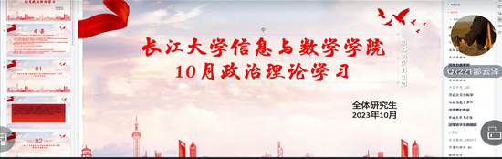 全体研究生在线上开展十月政治理论学习活动,此次会议由研究生会组织部鲍泽智主持,重点学习了习近平总书记在《求是》杂志上发表的重要文章《扎实推动教育强国建设》。