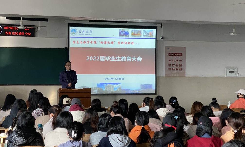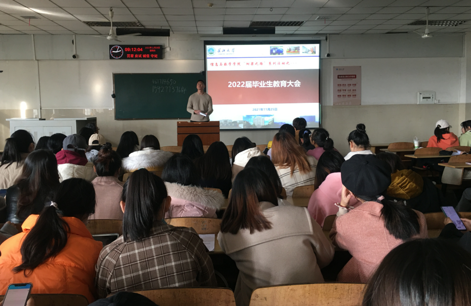 2018级毕业生教育大会暨校友报告会在12教202圆满召开。出席本次会议的人员有院党委副书记袁海山、学工办主任严星、辅导员黄何以及2018级全体毕业生。本次大会由院党委副书记袁海山主持。