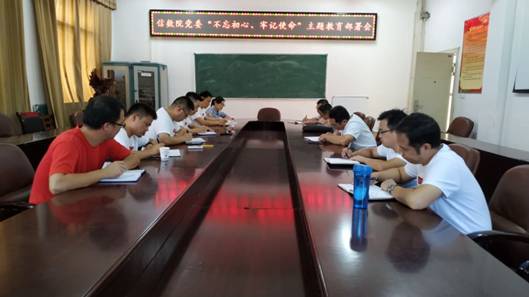 根据学院党委“不忘初心、牢记使命”主题教育工作安排,为达到学习目的和效果,学院安排4个单元时间,分别于9月26日下午、10月1日上午、10月9日上午、10月10日晚上,组织班子成员、支部书记和党建秘书进行了专题学习交流。