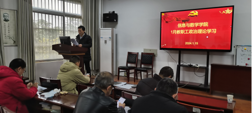 在8教406开展1月教职工政治理论学习暨支部主题党日活动。院党委书记李喜成主持学习活动,院领导班子成员及全体教职工参加会议。本次政治理论学习习近平新时代中国特色社会主义思想、全面从严治党,师德师风建设,高水平大学建设四个专题。