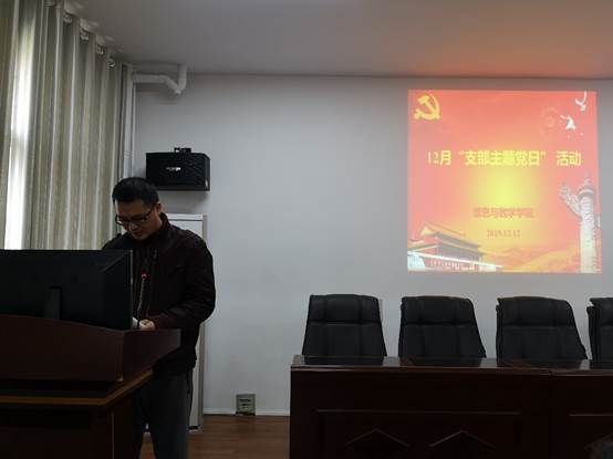 在8教406会议室举行12月教职工政治理论学习会和“支部主题党日”活动。党委书记高迎斌主持,全体教职工和全体党员参加。会议分两个阶段进行。