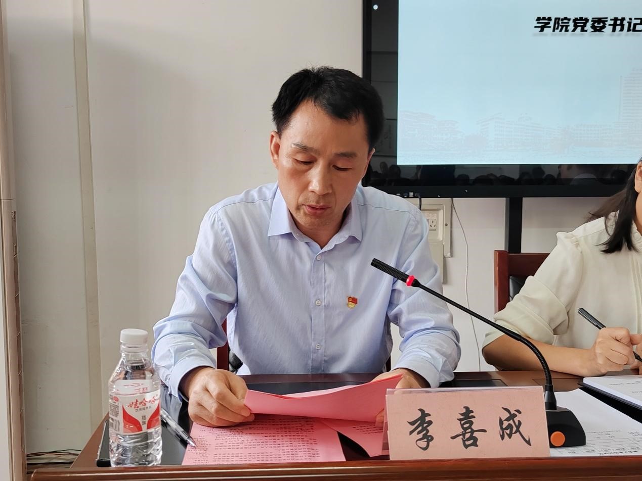 全体教职工、部分学生代表参加会议,学院党委书记李喜成主持会议。