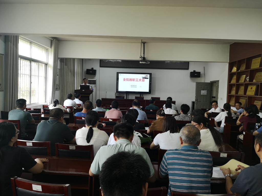 在8教406会议室召开全院教职工大会,传达学校暑期工作会议精神,部署学院暑期工作。院长张涛主持会议,全体教职工参会。