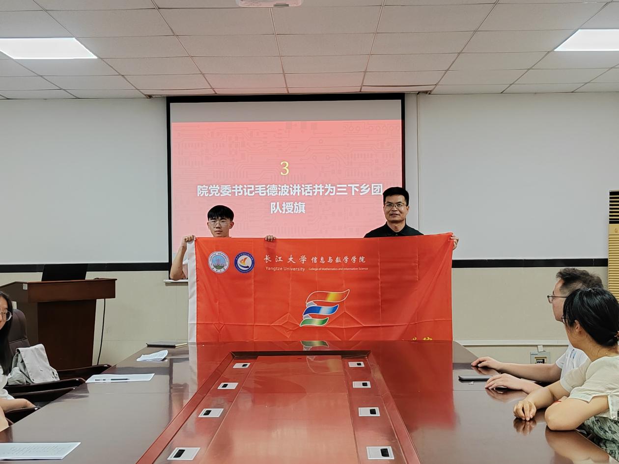 在8教210会议室举行暑期社会实践出征仪式。院党委书记毛德波、院党委副书记谷军、学工办主任姜曼、院团委书记黄何、辅导员吴朝晖以及“抗大·树梁”数学科普志愿服务队全体成员共同出席了本次仪式。