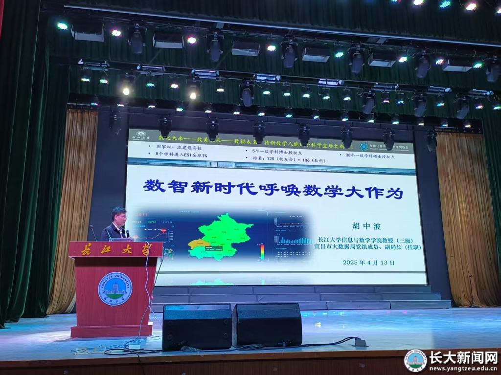 三级教授,宜昌市数据局党组成员、副局长(挂职)胡中波作《数智新时代呼唤数学大作为》专题讲座。胡中波结合智能港口货运自动化、无人驾驶、AI智慧农业案例,阐述数学在人工智能、大数据分析等领域的核心支撑作用。“从智能医疗诊断到金融风控模型,从神经网络到大模型融汇数据集,数学正逐步成为驱动社会进步的隐形引擎。”但大模型技术的标准化,让所有企业的策划大同小异,给出能打动客户的差异化技术白皮书反而成为未来一段时期的新痛点。胡中波通过两次数学危机的历史讲解,结合现如今的大模型人工智能的兴起,告诉同学们现在的数学正面临着新机遇。他强调,数学不仅是技术的基石,更是创新和差异化竞争的源泉,掌握数学思维将帮助我们在未来的科技浪潮中占据先机。