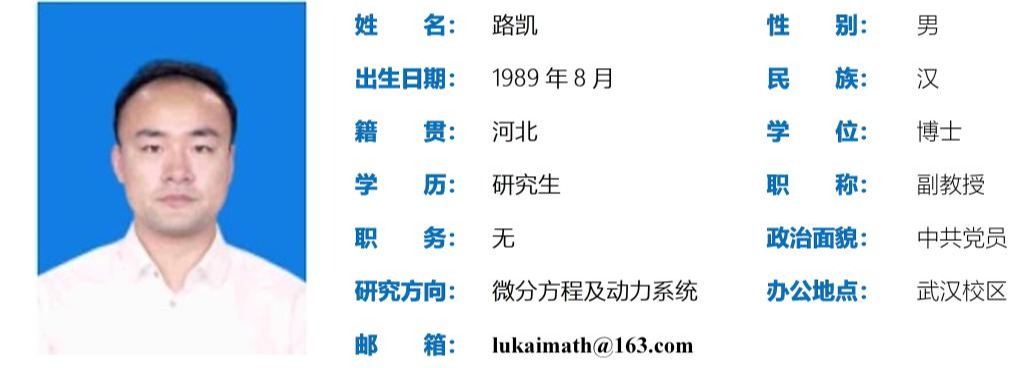 路凯,男,生于1989年8月,博士,副教授,主要研究方向为微分方程及动力系统。2019年12月毕业于华南理工大学黄色网址大全